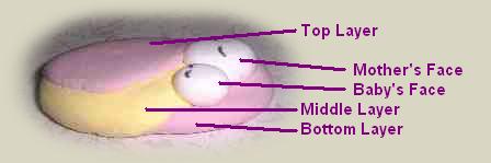 Two of the small balls is made into an oval shape for the mother's and baby's face. |