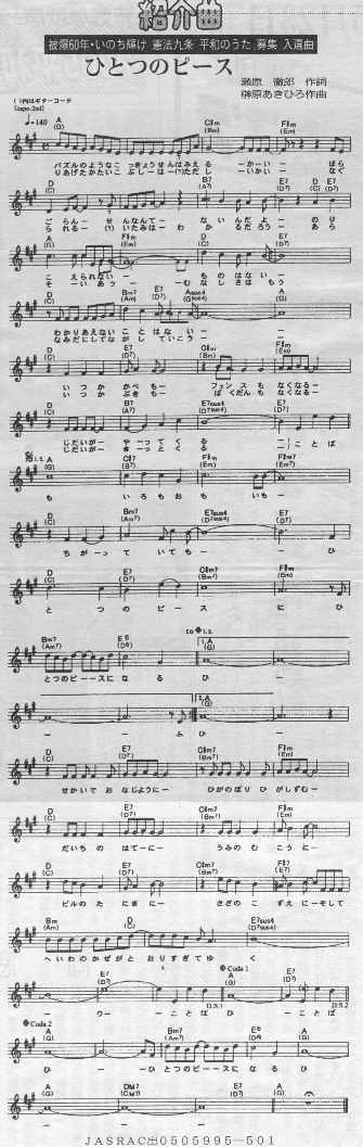 被爆60年・いのち輝け 憲法九条「平和のうた」募集で入選となった曲です。