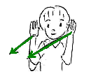 | 21 顔の幅に平行に両手で頭を挟んで前に出す | 22 心臓をぐるり | 23 胸を1回なでおろす | ||